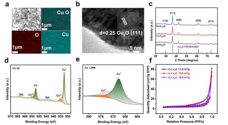 通过SEM、TEM、XRD、XPS及BET等表征手段(图2),确认所合成的具有不同空腔结构的Cu2O催化剂,并明确了其物相组成与结构差异。
